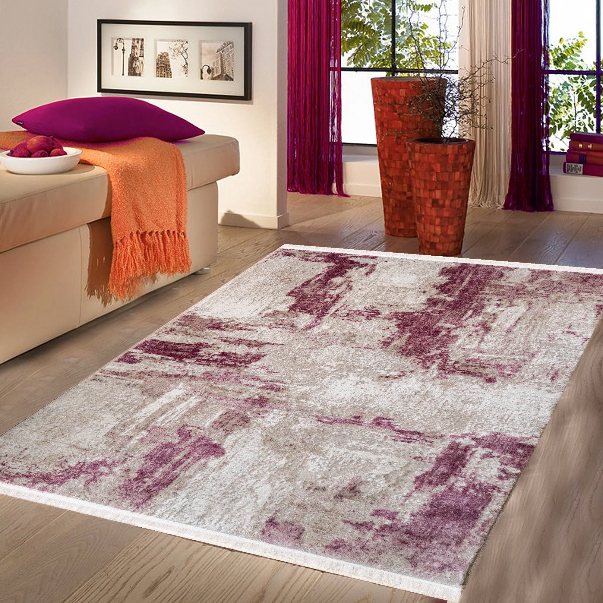 Set 3 Covoare Acrilice cu franjuri Visiniu ,Crem