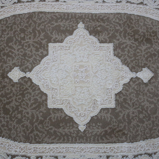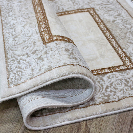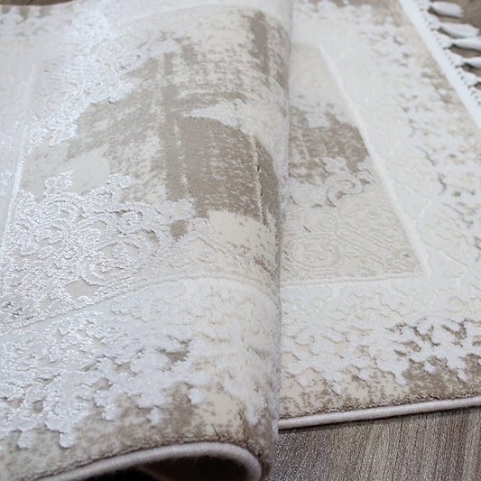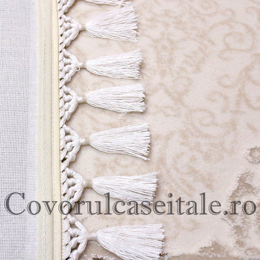 Covor Acrilic Baroc cu Franjuri bej- alb Cod 08357A